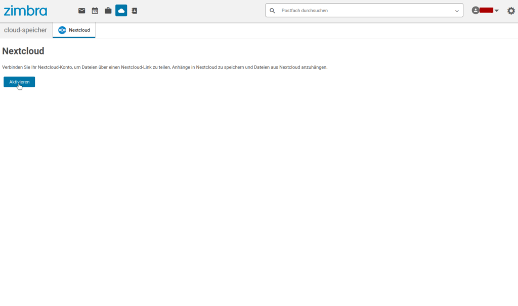 Wichtig: Die Verbindung ist benutzerbezogen. Verwenden Sie unbedingt denselben Nextcloud-Benutzer, dessen Dateien Sie in Zimbra benötigen.