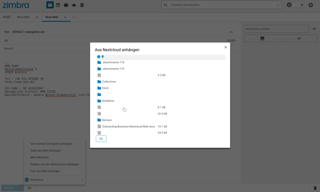 Nextcloud in Zimbra öffnen
