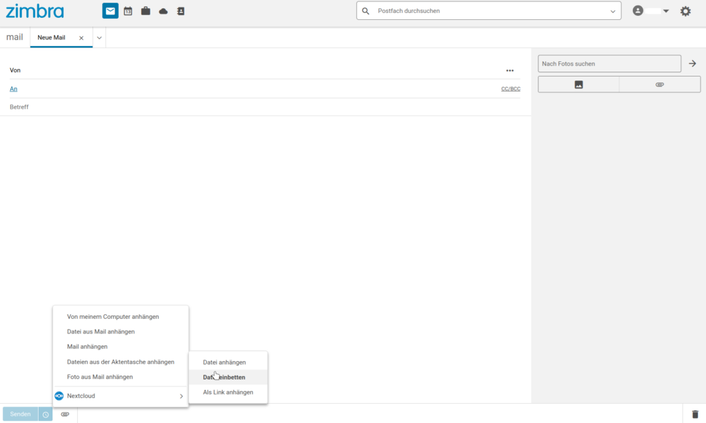 - Öffnen Sie eine neue E-Mail in Zimbra.